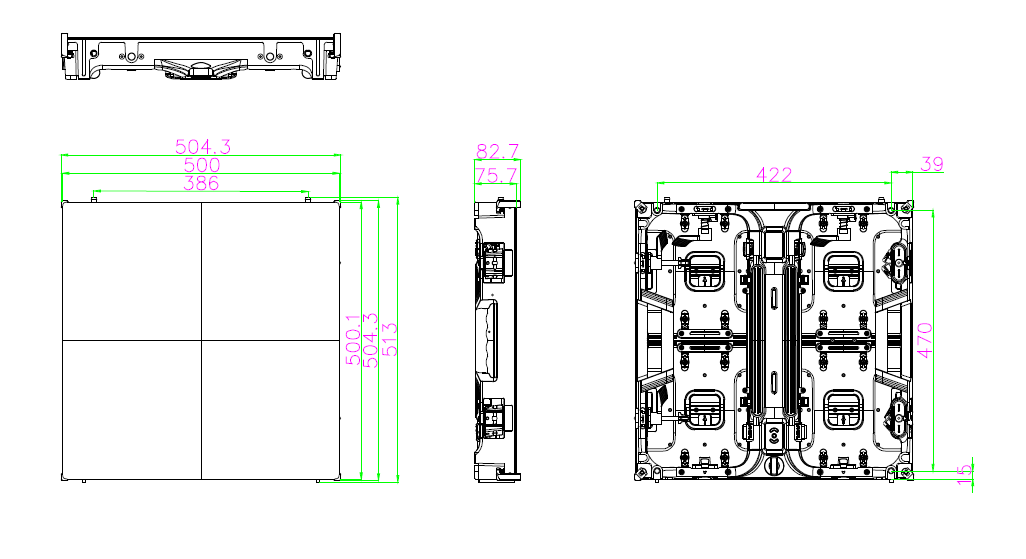 500 mm wide x 500 mm high x 63mm deep