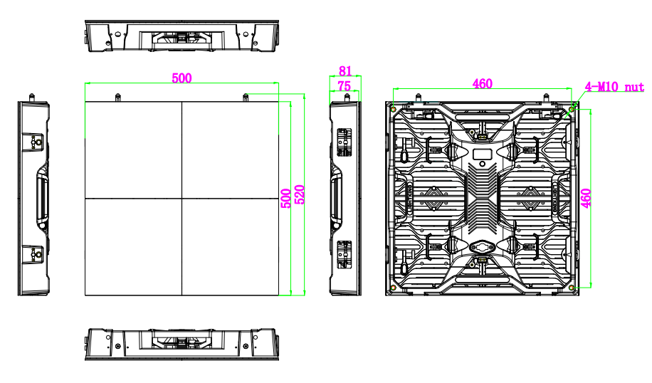 500 mm wide x 500 mm high x 70mm deep