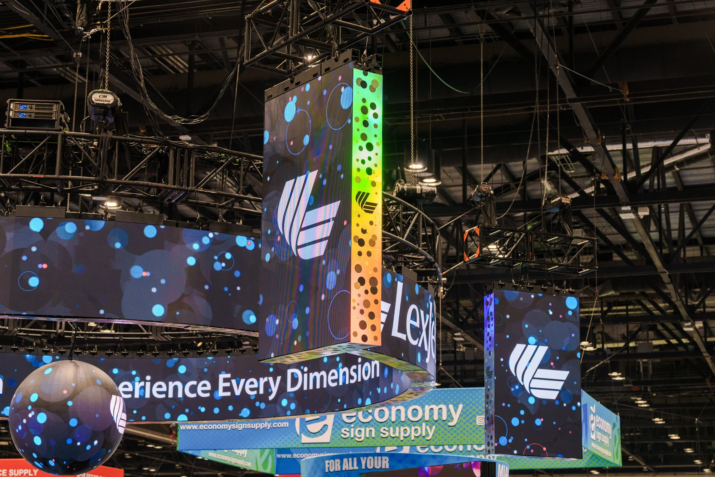 Built for exhibitors, booth builders, and marketing agencies who want more than static signage, this installation was designed to surround the audience, guide attention, and turn casual foot traffic into fully engaged visitors.